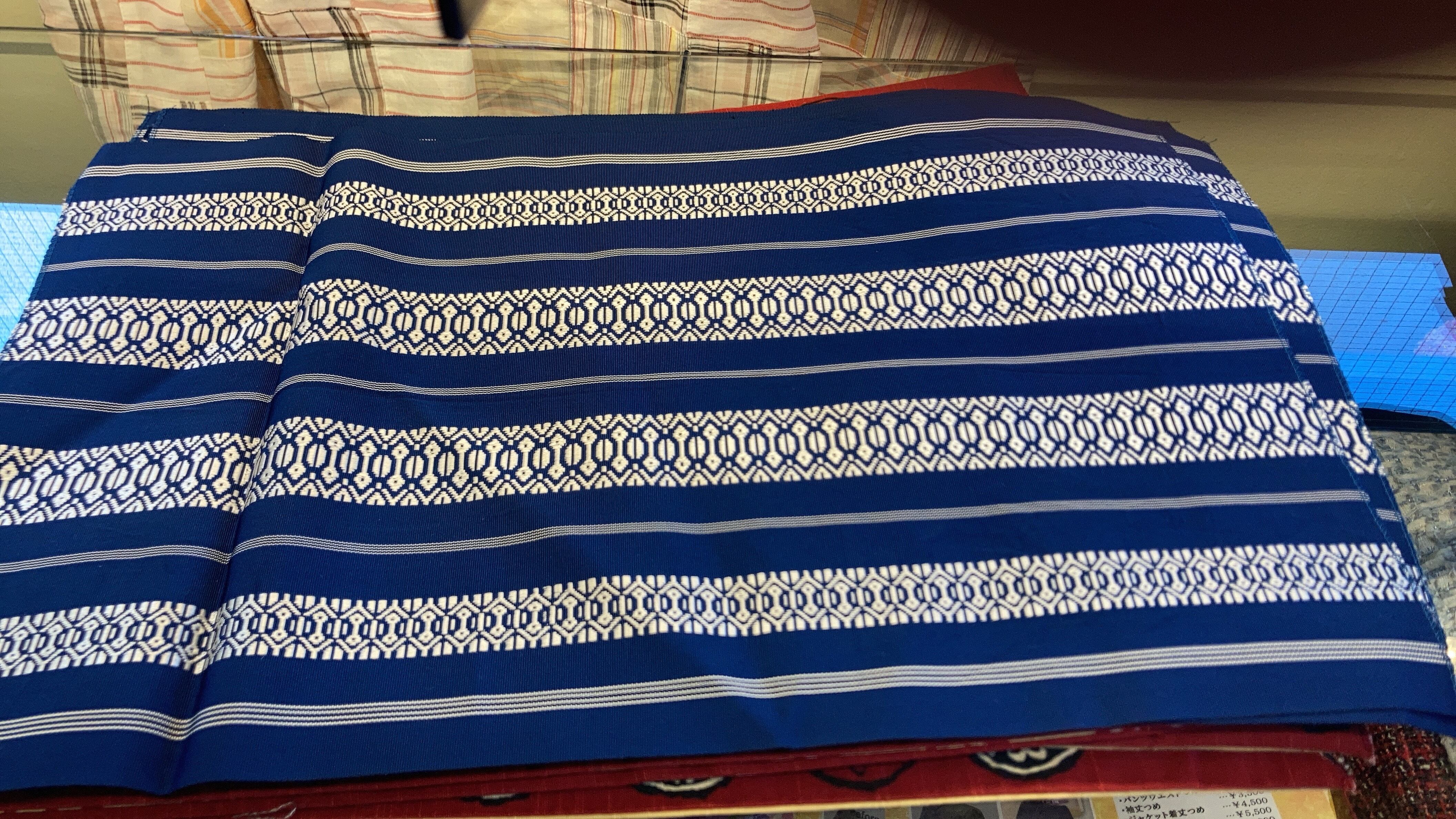 紺色に白の織り柄帯を利用したランチョンマット